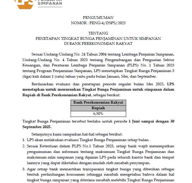 Penetapan Tingkat Bunga Penjaminan Untuk Simpanan di Bank Perekonomian Rakyatoleh moderator216/06/202516/06/2025PENG-4-DSPS-2025-Penetapan-Tingkat-Bunga-Penjaminan-Untuk-Simpanan-Di-Bank-Perekonomian-Rakyat